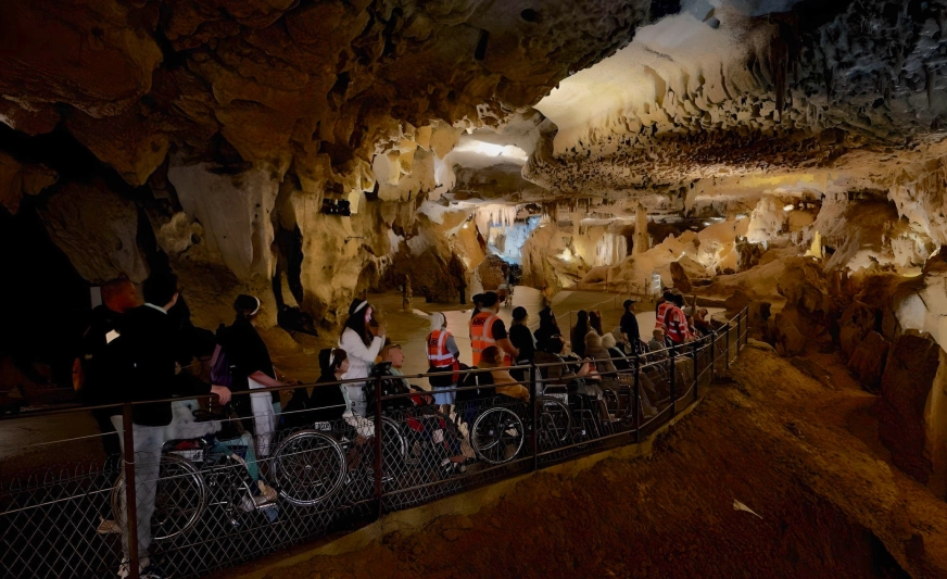 " Les grottes sont magnifiques. On fait une partie à pied puis un petit bout en bateau et on fini en petit train. La première partie est accessible aux personnes handicapées ..."